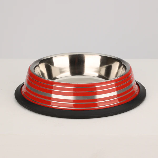 For dogs and cats Skatrs Anti-Slip Glossy Striped Bowl (Red)