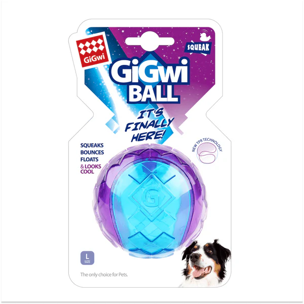 GiGwi Ball Squeaker Toy (Blue/Purple) for Medium-Chewing Dogs