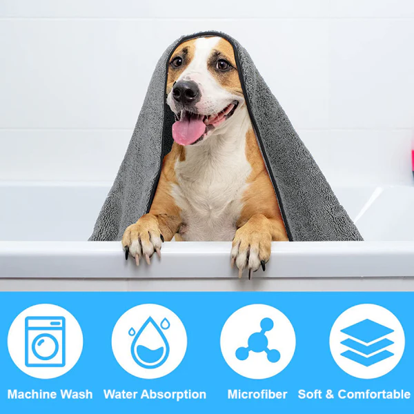 Quick Dry Towel for Dogs and Cats by Talking Dog Club (Grey)