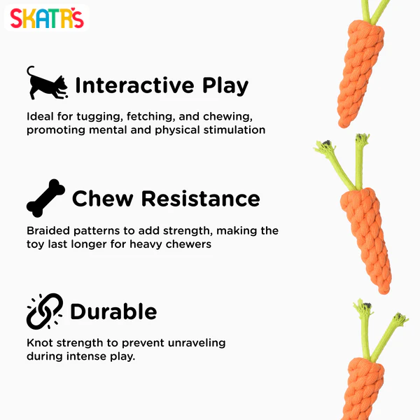 Skatrs Rope Chew Toy in the Shape of a Carrot for Dogs and Cats(Orange)