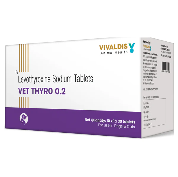 Tablets of levothyroxine sodium (Vivaldis Vet Thyro 0.2) for cats and dogs